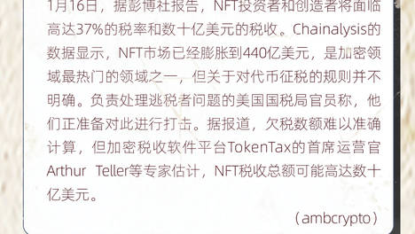早报|彭报社报告:美国国税局将对NFT市场参与者收税并打击逃税者