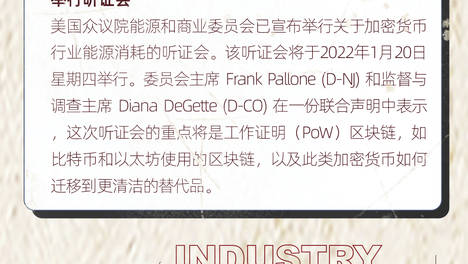 早报|美国众议院将于1月20日就加密货币的能源消耗问题举行听证会