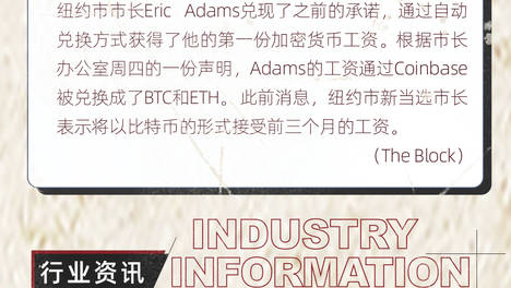 早报|纽约市市长收到第一份BTC和ETH薪水