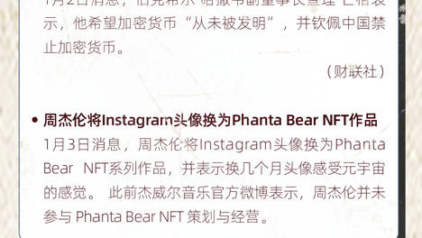 早报|周杰伦将Instagram头像换为Phanta Bear NFT作品
