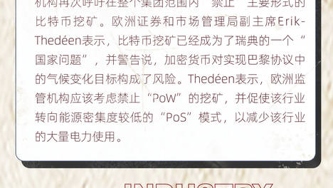早报|欧洲证券及市场管理局:欧盟应禁止加密货币能源密集型挖矿