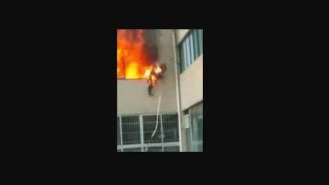消防员大火烧身跳楼脱险