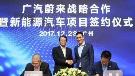 12月28日,蔚来汽车对外公布与广汽集团正式签署战略合作暨新能源汽车项目,表示双方将在智能网联新能源汽车产业