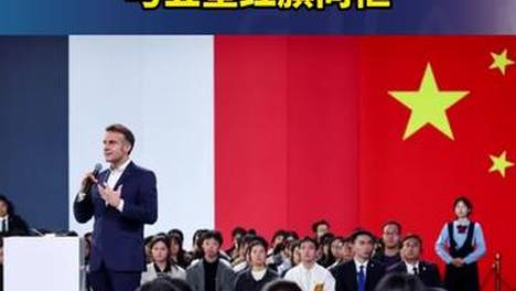 法新社镜头下的马克龙,与五星红旗同框