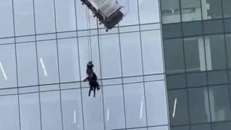 惊魂一幕!美国一摩天大楼外吊篮挂绳断裂,清洁工被悬挂在半空
