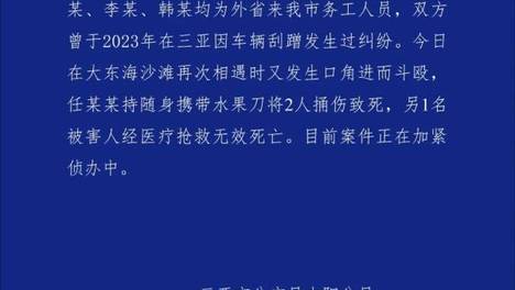 男子沙滩持刀伤人致3死,三亚警方通报