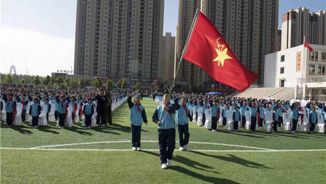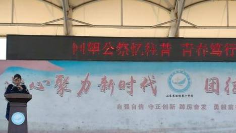 山东省淄博市第十中学举行爱国主义主题升旗仪式