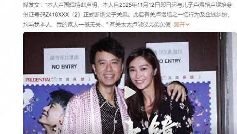 已经年过古稀的他,竟然当众宣称与卢煜培正式断绝父子关系,并特别附上了他的部分身份证号码,这份决然之下,到底有着怎样令人痛心的事情,让他做出了这个决定?姐姐卢淑仪事后伤心地表示,因为弟弟的事情,让父母的老年生活…