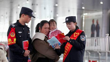 怀化铁警对旅客进行宪法知识宣传