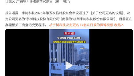 宇树科技IPO辅导机构中信证券提交的"辅导工作进展情况报告"披露,这家机器人新锐企业已通过股东会决议,将公司名称从"杭州宇树科技股份有限公司"变更为"宇树科技股份有限公司",目前正在办理相关工商登记变更程序。…