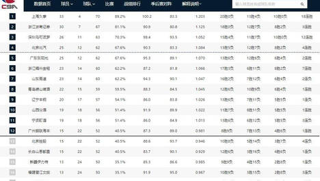积分榜形势:广东升前4北京跌至NO.5 辽宁锁定季后赛
