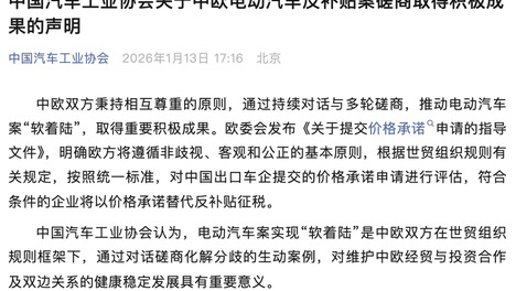 声明称,中欧双方秉持相互尊重的原则,通过持续对话与多轮磋商,推动电动汽车案“软着陆”,取得重要积极成果。图片来源:中汽协编辑中国电动汽车的竞争优势源自产业链上下游持续不断的技术创新,以及在超大规模市场优势下,…