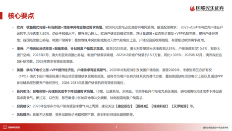 2026年全球户储市场将进入景气向上周期,欧洲、澳洲、美国及新兴市场受益于政策补贴和需求增长,推动户储需求激增。