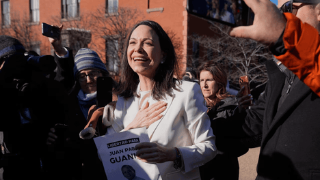 玛丽亚·科里纳·马查多向特朗普赠送诺贝尔和平奖奖牌,呼吁重建委内瑞拉自由事业,强调其对自由和人权的承诺。