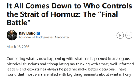 达利欧警告,美伊战争关键在霍尔木兹海峡,控制权决定美国全球地位与经济安全。