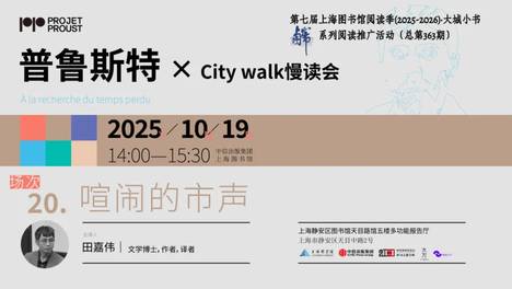 普鲁斯特×Citywalk慢读会第二十期活动以“喧闹的市声”为主题,开启阅读《追忆似水年华》的第五卷《女囚》。于2025年10月19日(周日)14:00在和平书院少儿馆B1多功能活动区举行,文学博士、译者、作…