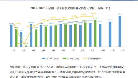 9月二手车市场交易量146.62万辆,同比增长11.77%
