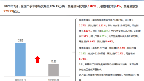 全国二手车市场深度分析:7月交易量126.15万辆 同比增长4.0%