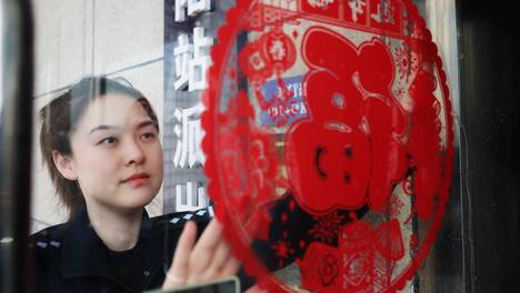 2026年新春将至,春运安保工作有序推进,武汉铁路公安局襄阳公安处襄阳站派出所民警正将大红的“福”字贴在门上。窗花映红了警营,也温暖了春运归途,化作了春运路上最安心的守护。他们以警营为家,用坚守作笔,在万家团…