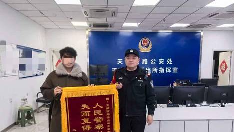 天津西站民警高效找回失物,获旅客赠送锦旗致谢。