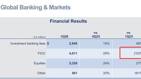 财联社4月14日讯(编辑赵昊)周一(4月13日)美股早盘,高盛股价一度跌超4%。该行最新公布的第一季度业绩报告整体强于预期,但FICC交易收入意外下滑,打击了市场情绪。根据高盛盘前发布的业绩报告,该行2026…