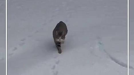 真·走猫步!雪天猫咪步态曼妙,咋做到步步都踩着自己脚印的?网友:心有来时路,何惧风雪寒