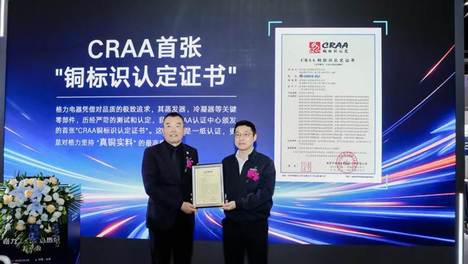 格力电器获全国首张CRAA“铜标识认定证书”