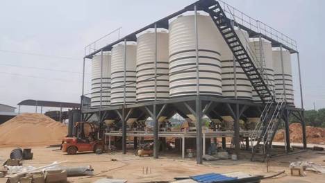 石英石酸洗罐现场安装PE全塑储罐大锥底30立方酸洗池工地施工现场