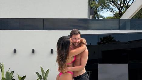 梅西夫妇泳池旁秀恩爱 安东内拉献上热吻
