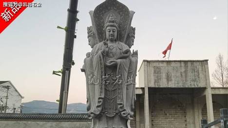 大型石雕四面观音佛像安装#露天观音雕像#惠安石雕