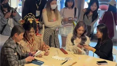 宣璐@宣璐 一袭中式华服耀眼夺目,孟美岐@孟美岐 轻盈蕾丝上装也是相当契合春日的氛围!二人一同在#2026春季搜狐视频关注流大会 时尚展台体验王星记扇艺,非遗有young~@张朝阳 @逸君子 @狐克斯姐 @搜狐艺术 @杭州王星记扇业