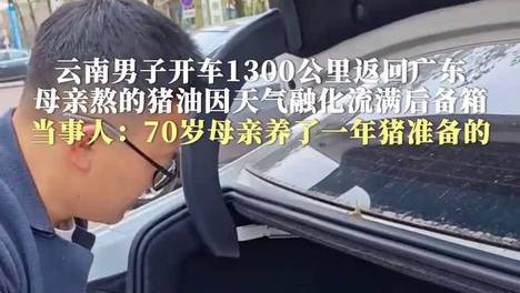 男子返程带两桶猪油融化洒满后备箱,凝固后一勺勺铲出