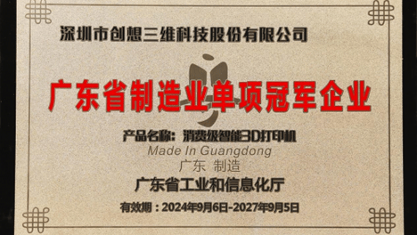 重磅加冕!创想三维荣获“第九批制造业单项冠军企业”