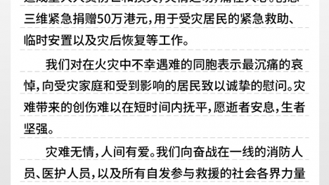 创想三维捐赠50万港元支援香港大埔火灾救援
