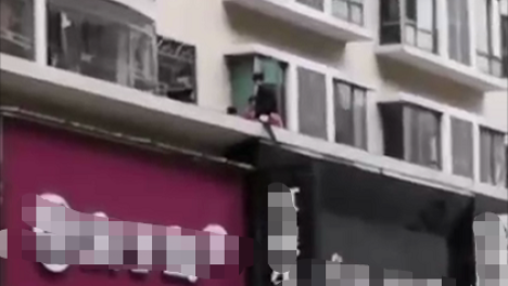 揭阳一男子疑似与家人吵架欲轻生,消防员迅速赶到现场