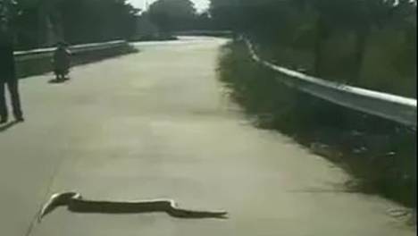 头皮发麻!揭阳一路段惊现大肥蛇横穿马路