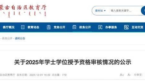 近日,内蒙古自治区教育厅发布《关于2025年学士学位授予资格审核情况的公示》。根据《内蒙古自治区学士学位授权与授予管理办法(修订)》(内学位〔2022〕2号)有关规定,自治区人民政府学位委员会办公室组织开展了…