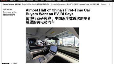 彭博调查:中国近半数首次购车者计划购买电动汽车