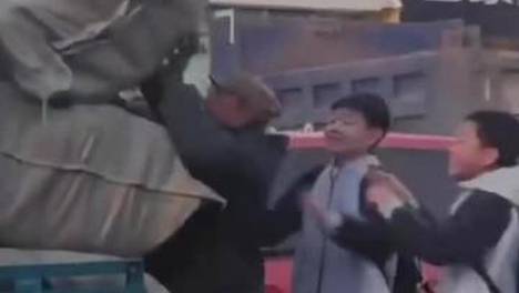 四名少年路遇老人货物掉落,主动帮助装车后开心离开