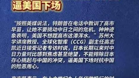 高志凯:日本长期以来对中日力量对比感到焦虑甚至绝望,不排除日本存心挑衅中国逼美国下场(编辑:大河)