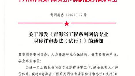 《青海省工程系列网信专业职称评审办法(试行)》印发