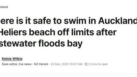 奥克兰市议会水质网站Safeswim已对15个海滩发出红色警告,意味着这些海滩不建议游泳。这些海滩包括GreenBay、BethellsLagoon和CoxsBay。此外,有两个地点被列为黑色警告,即完全不宜…