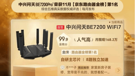 堆料不盲目,技术有温度:中兴问天BE7200Pro 登顶京东路由器金榜