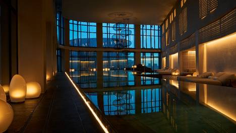 YabuPushelberg设计的家具与装置在每个转角都带来独特体验:Lasvit的Cipher吊灯以柔和不对称的排列悬挂,在下方平面投射出斑驳光影;HengePuddle茶几巧妙呼应品川目黑川的意象,而线条…