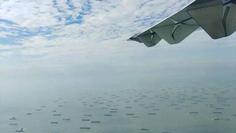 从空中航拍看大批抽砂船聚集,数量多到几近「围岛」?岛内居民快崩溃!