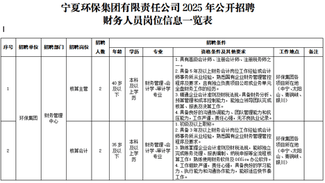 附岗位表!宁夏环保集团招聘!