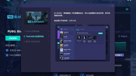 通过Twitch直播掉宝参与获取在UU加速器内搜索“pubg黑域撤离”,进入加速详情选择“直播掉宝”,进入托管绑定页面点击“去绑定”,复制弹出的绑定码完成Twitch账号授权与绑定流程找到相关的PUBGBla…