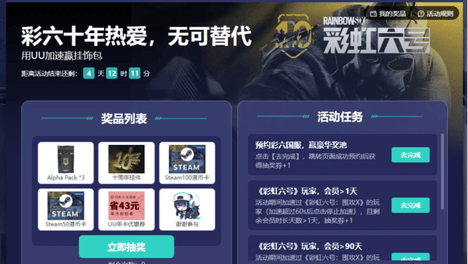 彩虹六号围攻X十周年庆典福利及UU加速器专属活动全攻略