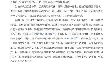 雅迪就新车型设计致歉!