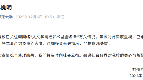 “福彩公益金受助名单疑照搬百度人名库”,杭州师范大学通报
